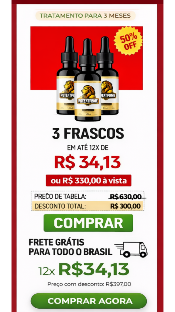 Basta escolher o kit que mais combina com você. POTENT PRIME pode ser pago a vista, através de boleto bancário,